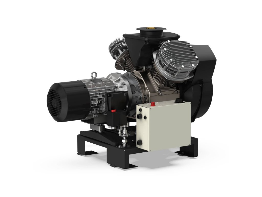 Kompresorová jednotka s motorem z řady Industrial Tech s přímým spojením elektromotoru s jednotkou se sacím výkonem 408 l/min určená pro nepřetržitý provoz v průmyslu. Stroj s příkonem 1,5 kW a s výstupním tlakem 10 bar disponuje následujícím standardním vybavením: