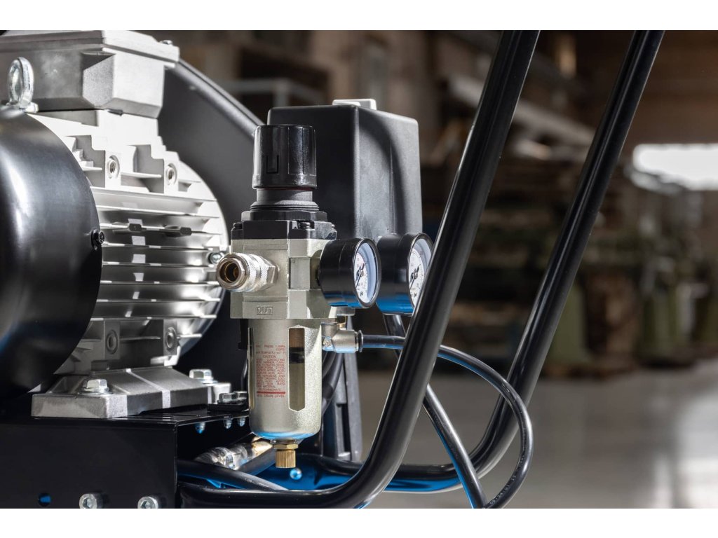 Jednostupňový kompresor z řady Pro Line s rozšířenou výbavou v olejem mazaném provedení určený pro mnoho profesionálních aplikací. Spojení elektromotoru s kompresorovou jednotkou A39B pomocí klínových řemenů se sacím výkonem 393 l/min a následujícím standardním vybavením: