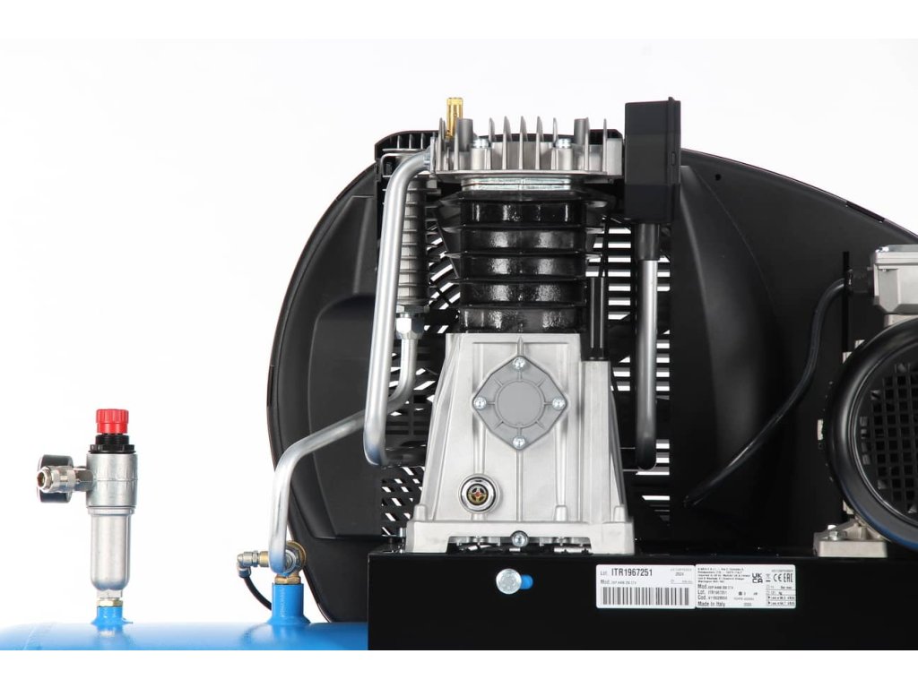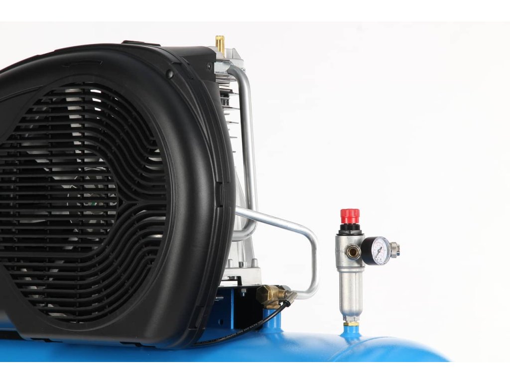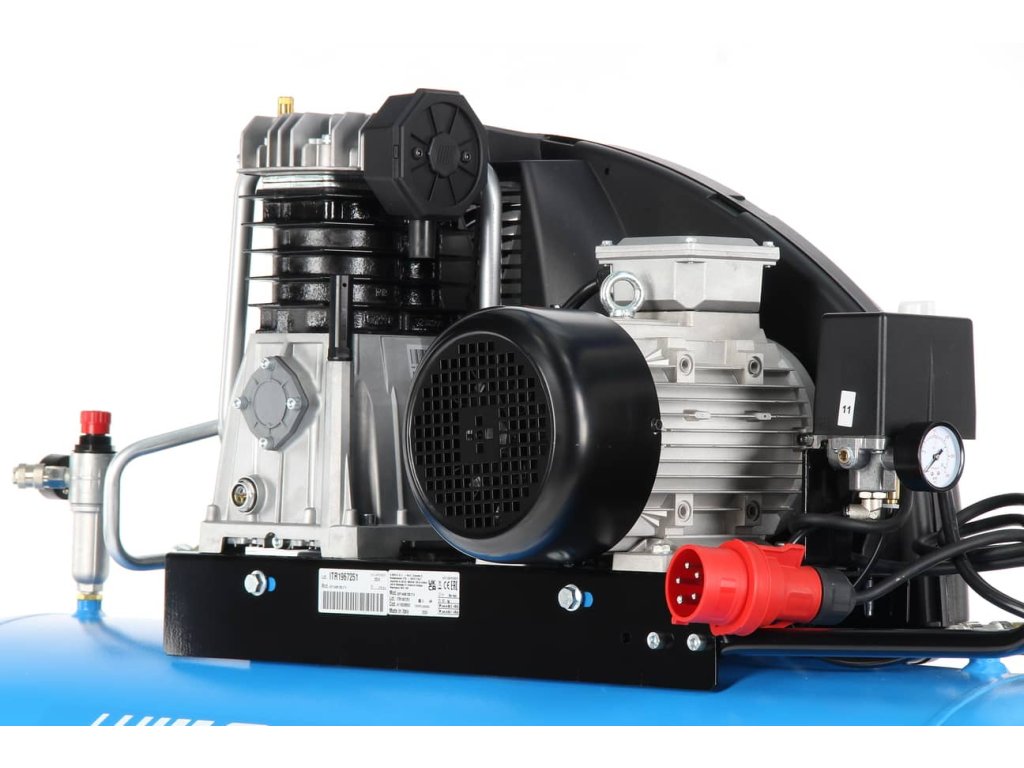 Dvoustupňový kompresor z řady Pro Line s rozšířenou výbavou v olejem mazaném provedení určený pro mnoho profesionálních aplikací. Spojení elektromotoru s kompresorovou jednotkou A49B pomocí klínových řemenů se sacím výkonem 444 l/min a následujícím standardním vybavením: