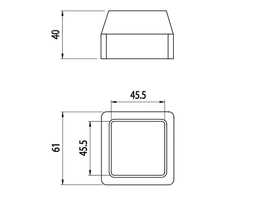Plastová krytka k podstavci profilu s řezem 45x45. Určeno pro podstavec 084.409.002.