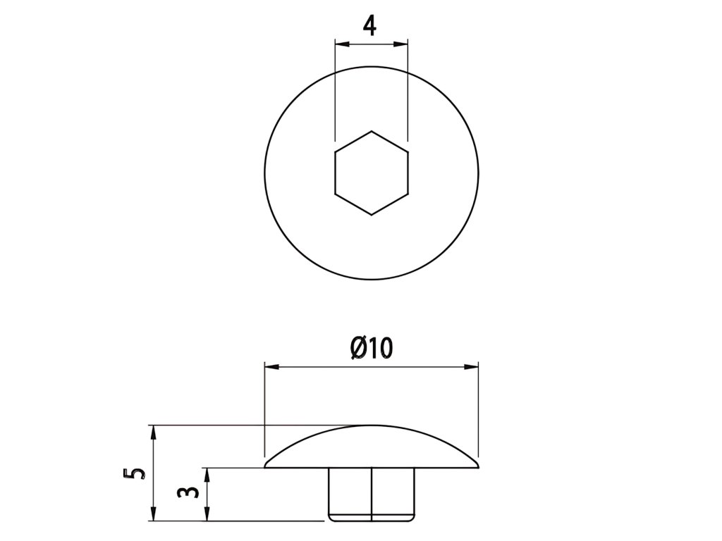 Krytka šroubu M6, šestihran 4 mm, D=10 mm