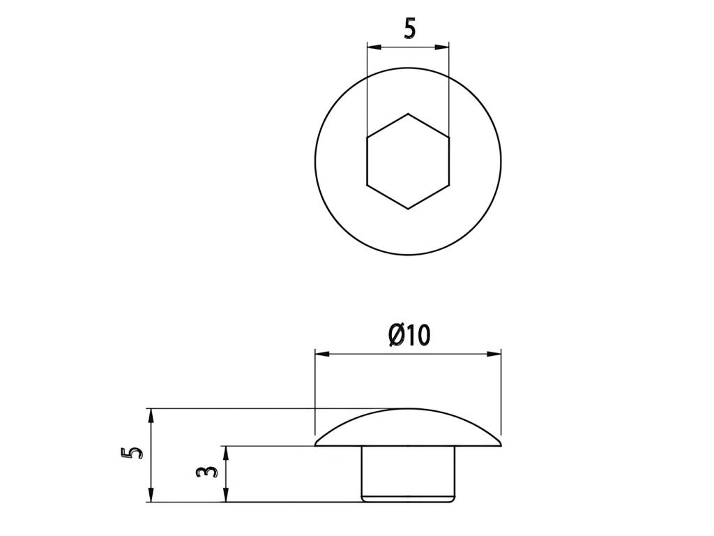 Krytka šroubu M6, šestihran 5 mm, D=10 mm