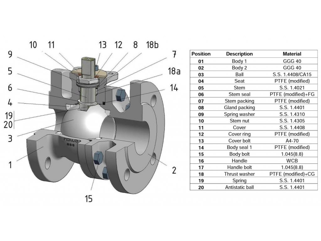 - vyrobeno z litiny GG25, těsnění PTFE