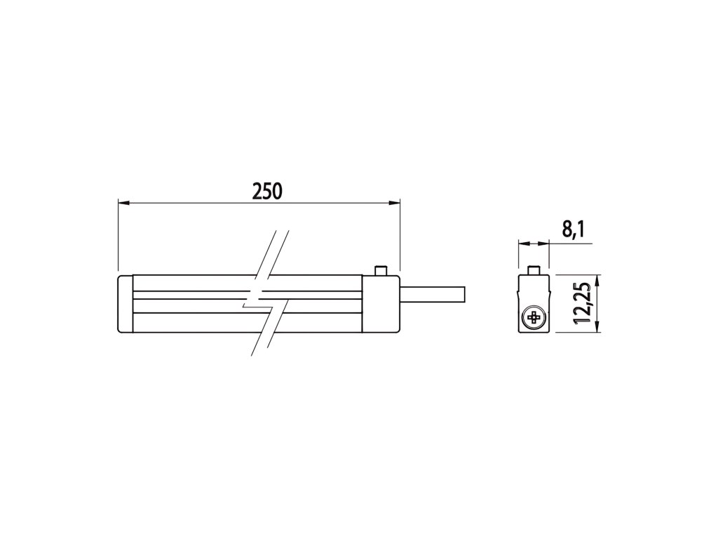 Světlo je dodáváno v červené barvě a s délkou 250 mm.