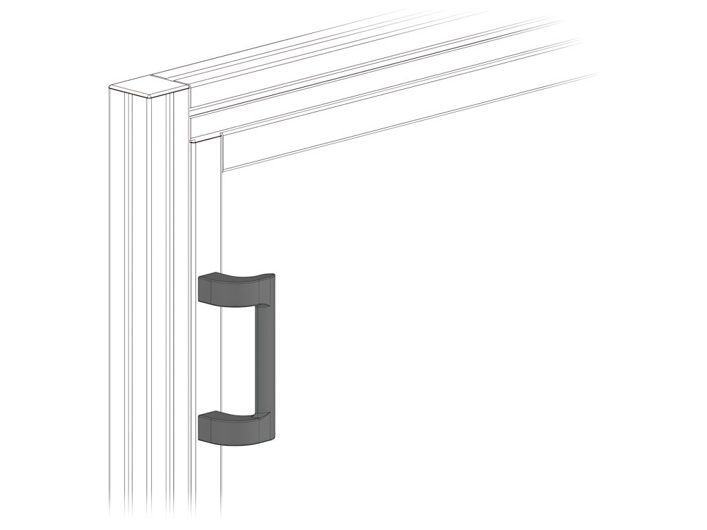 Otevřené madlo z polyamidu o rozměrech 130x48 mm.