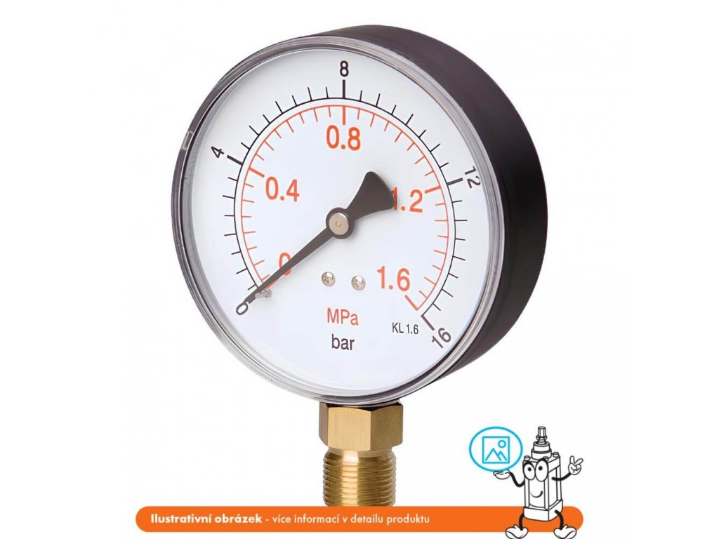 - Základní provedení manometrů se stranovým připojením, určené pro měření tlaku neagresivních médií s nižšími nároky na mechanickou odolnost přístroje
