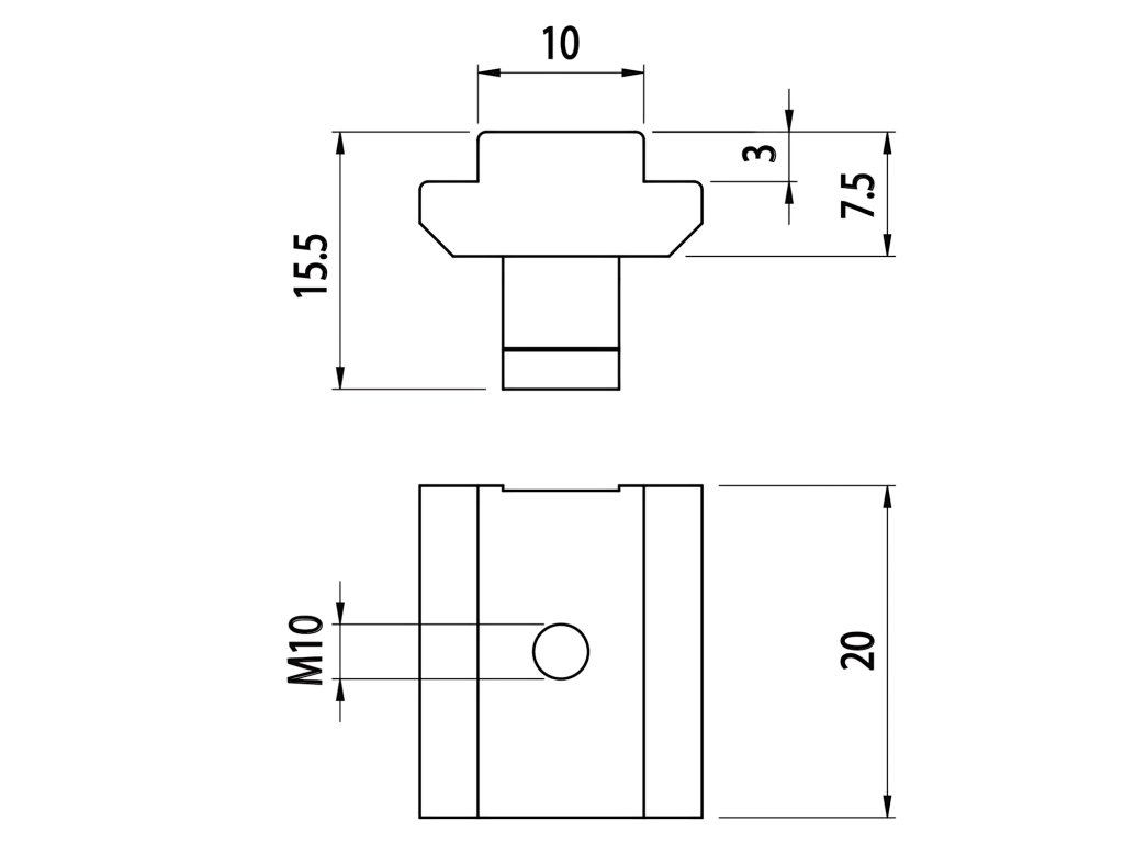 Čtvercová matice se závitem M10 pro montáž do drážek profilů sérií BH 40-10, BH 45-10 a BH 50-10.