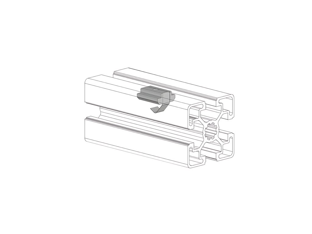 Pružina usnadňuje montáž díky možnosti nastavení polohy matice v drážce profilu.