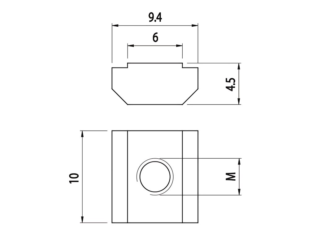 Čtvercová matice se závitem M4 pro montáž do drážky profilů série AC 30-6.