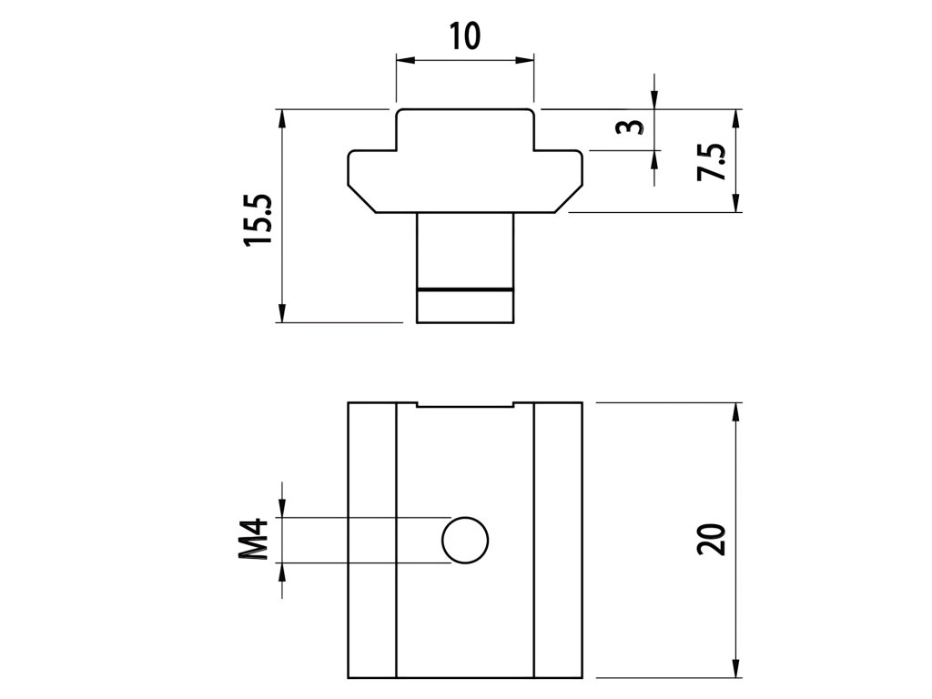 Čtvercová matice se závitem M4 pro montáž do drážek profilů sérií BH 40-10, BH 45-10 a BH 50-10.