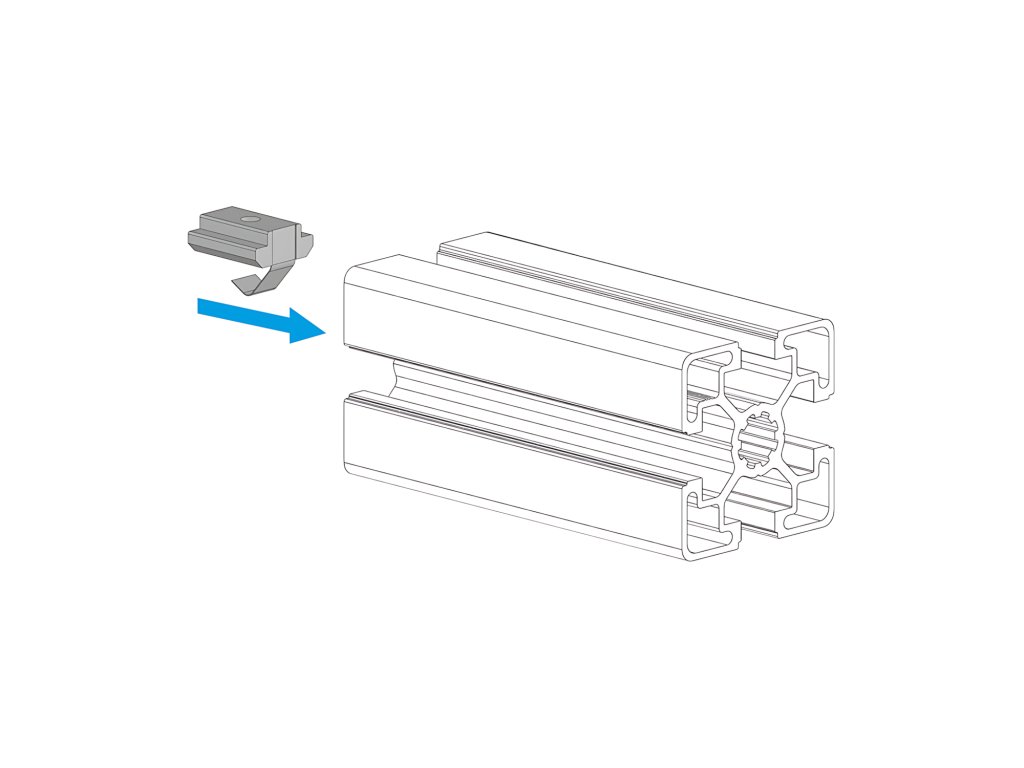Pružina usnadňuje montáž díky možnosti nastavení polohy matice v drážce profilu.