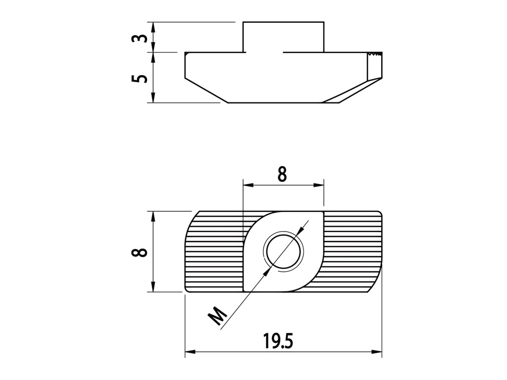 Matice se závitem M5 pro montáž do drážky profilů série IM 40-8.