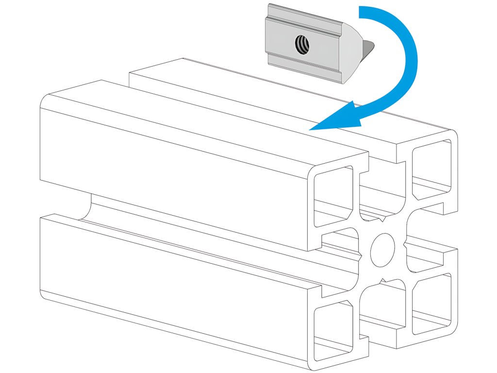 Pružina usnadňuje montáž díky možnosti nastavení polohy matice v drážce profilu.