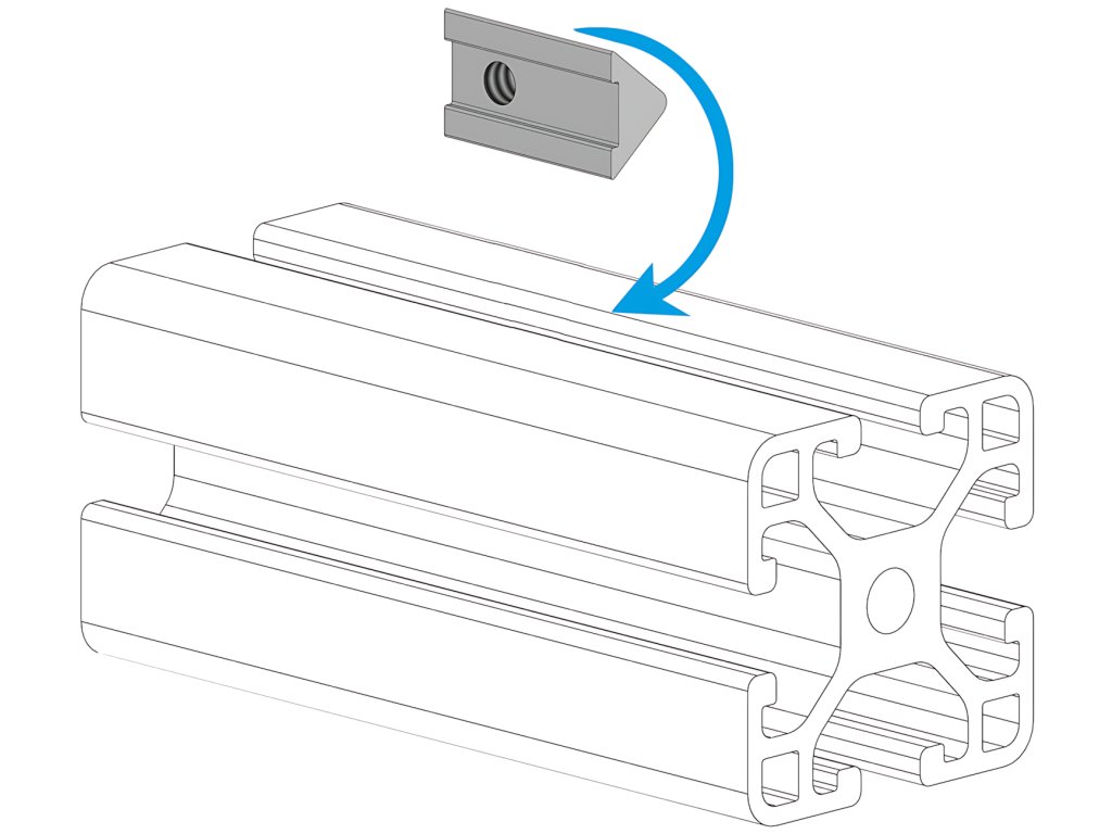 Pružina s kuličkou usnadňuje montáž díky možnosti nastavení polohy matice v drážce profilu.