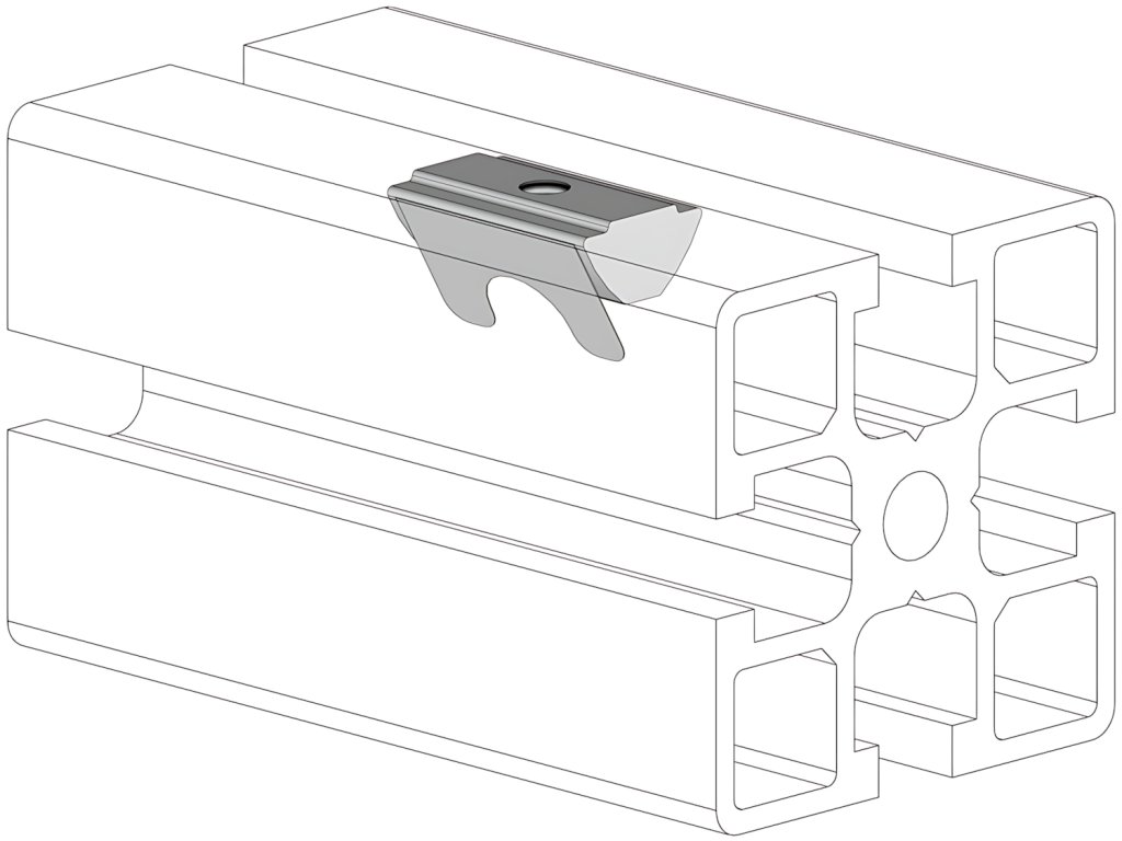Pružina usnadňuje montáž díky možnosti nastavení polohy matice v drážce profilu.