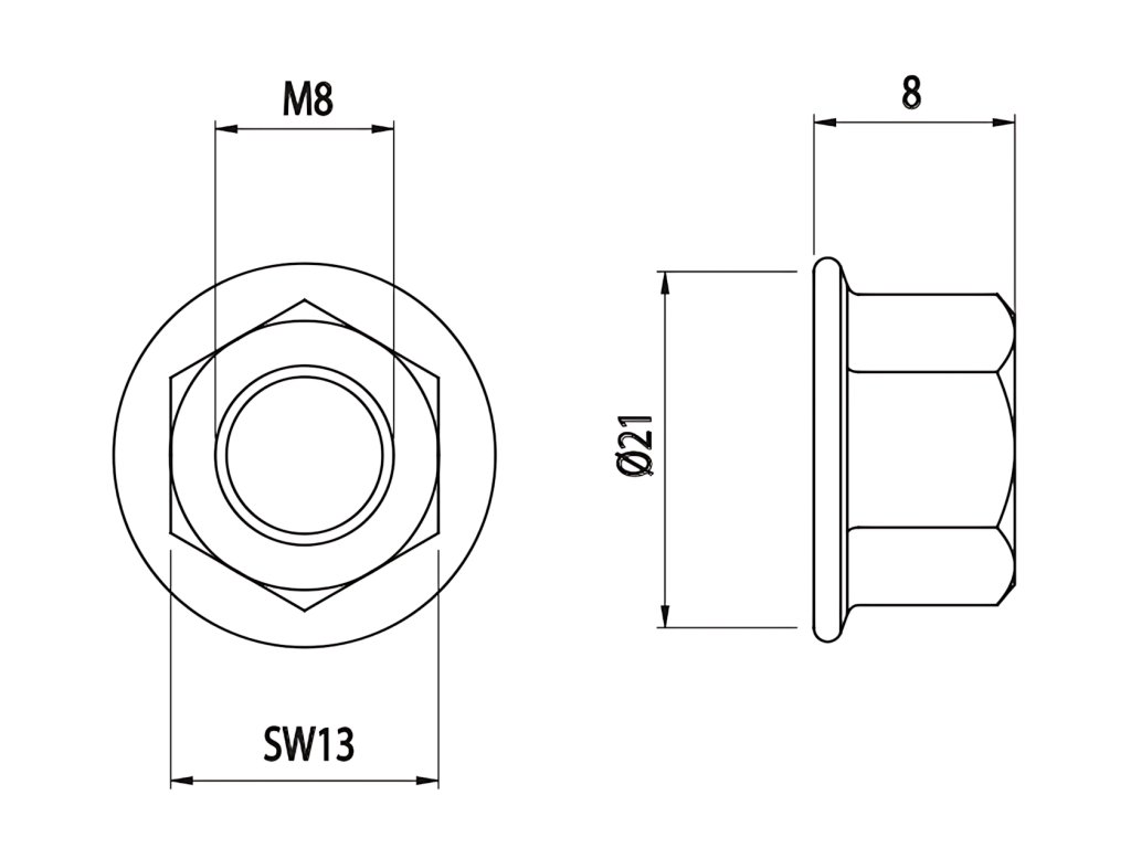Matice se závitem M8 s osazením o průměru 21 mm.