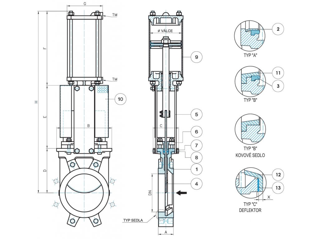 | Kategorie: | Nožová šoupátka s pneumatickým pohonem |