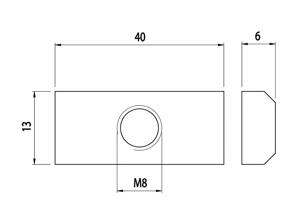 Obdélníková matice se závitem M8 pro montáž do drážek profilů sérií AC 40-8 a AC 45-8.
