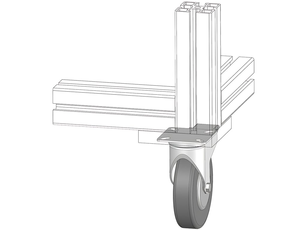 Otočné kolečko s průměrem 100 mm pro montáž pomocí příruby 60x60.