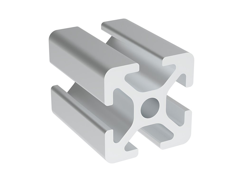 Mały profil aluminiowy o przekroju kwadratowym przeznaczony do tworzenia konstrukcji o niskim obciążeniu i niewielkich naprężeniach mechanicznych.