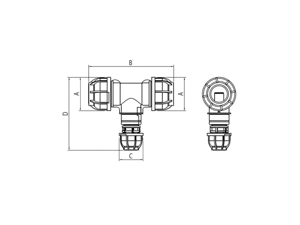 Złączka zredukowana typu T z odgałęzieniem antykondensacyjnym 50/20 mm