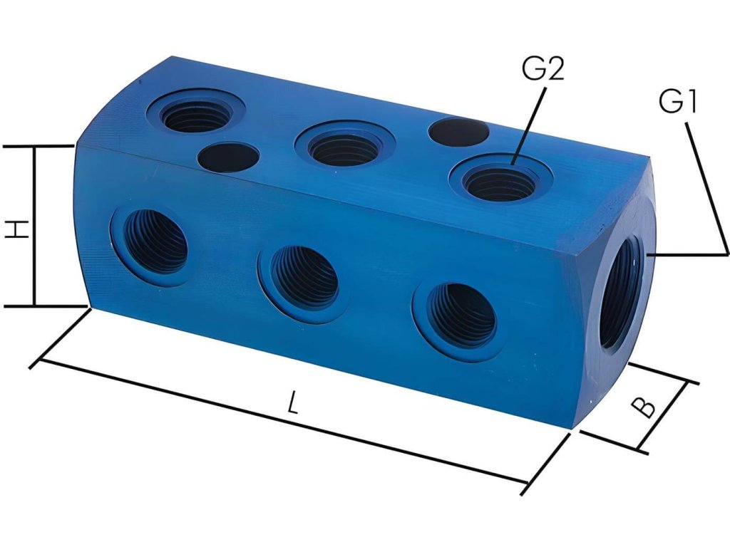 - Szyny rozdzielające umożliwiają rozdzielenie wielu gałęzi sprężonego powietrza