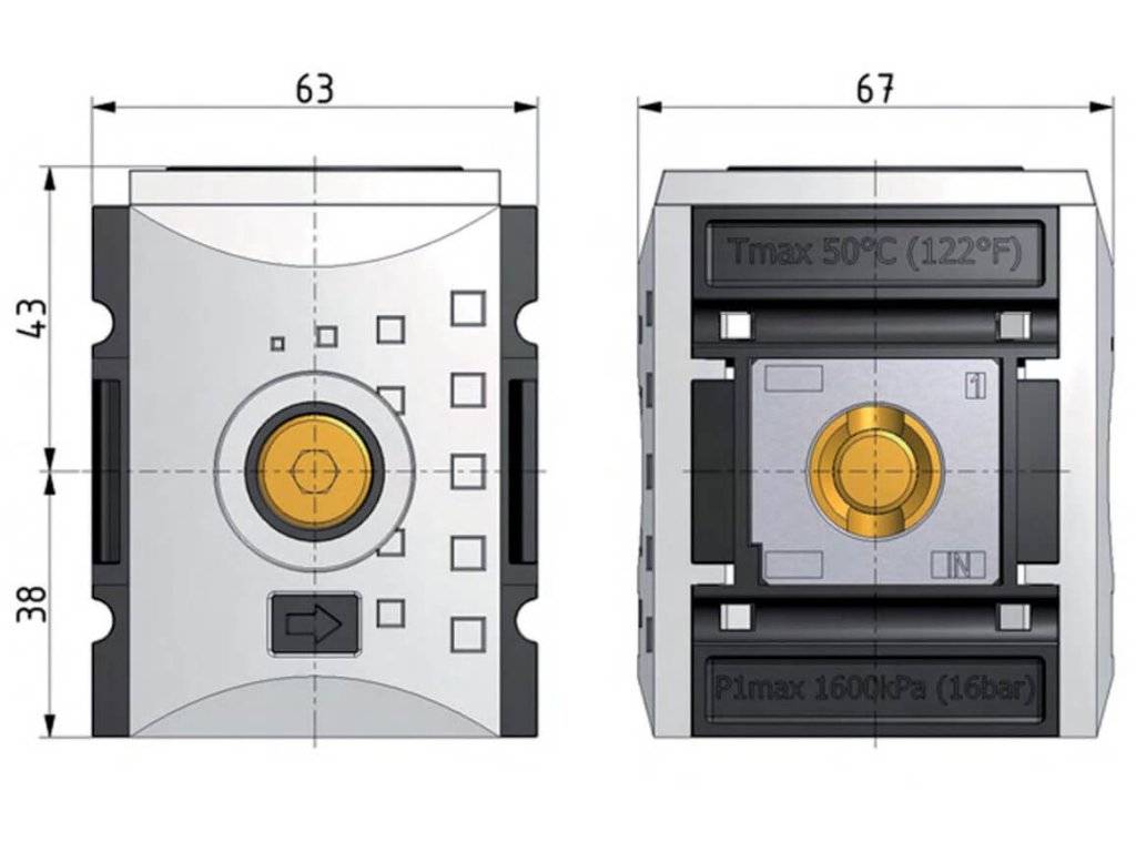 - Materiały: korpus - Grivory (PA66), sprężyna POM, uszczelka NBR