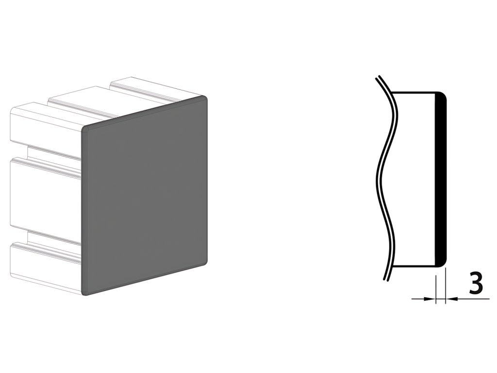 Szara zaślepka z poliamidu PA, odpowiednia do zamknięcia końca profilu o przekroju 100x100.