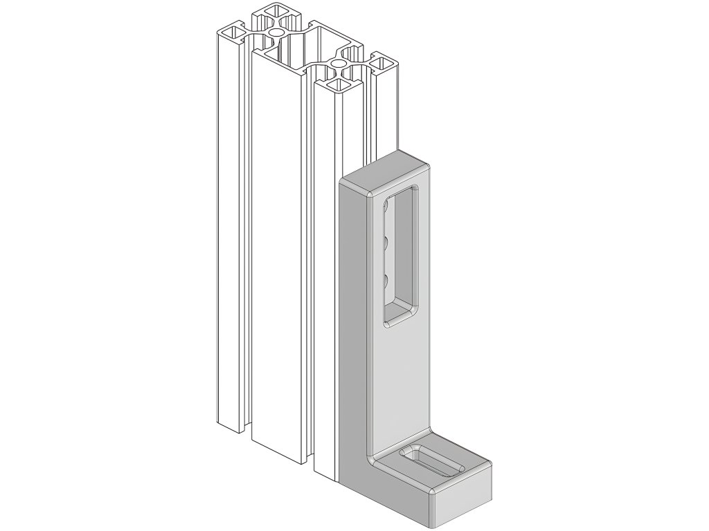 Podlahový úhelník pro montáž na profily se šířkou 40 mm pomocí šroubů M8.
