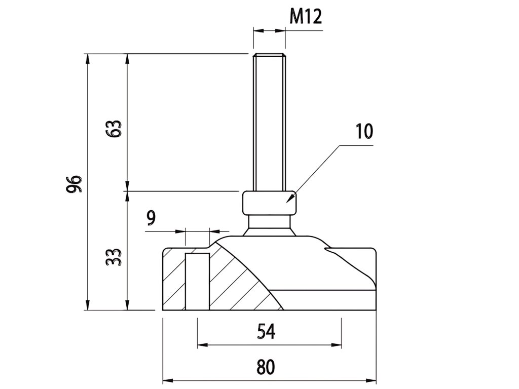 Podstavec D=80 mm, M12, nosnost 1000 kg