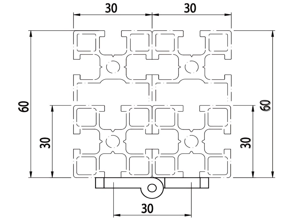 Vhodný především pro spojení 2 profilů s řezy o šířkách 30/30 mm.