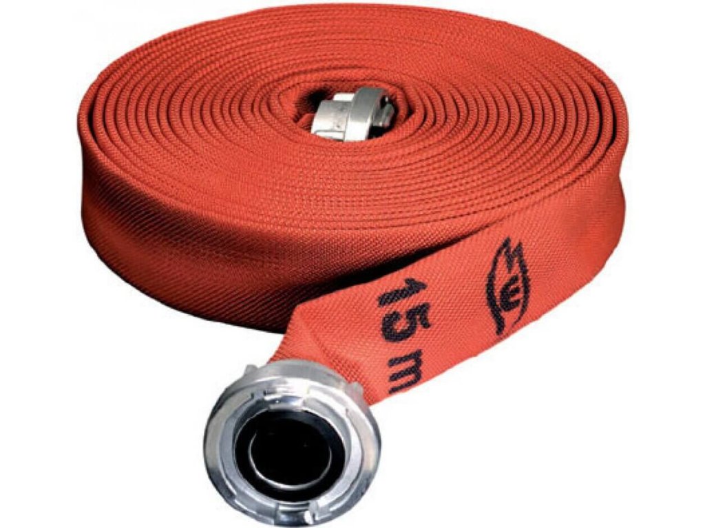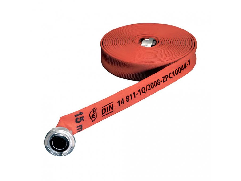 • zásahové hasičské hadice extrémně odolné vůči otěru v červené barvě, certifikace dle DIN 14811