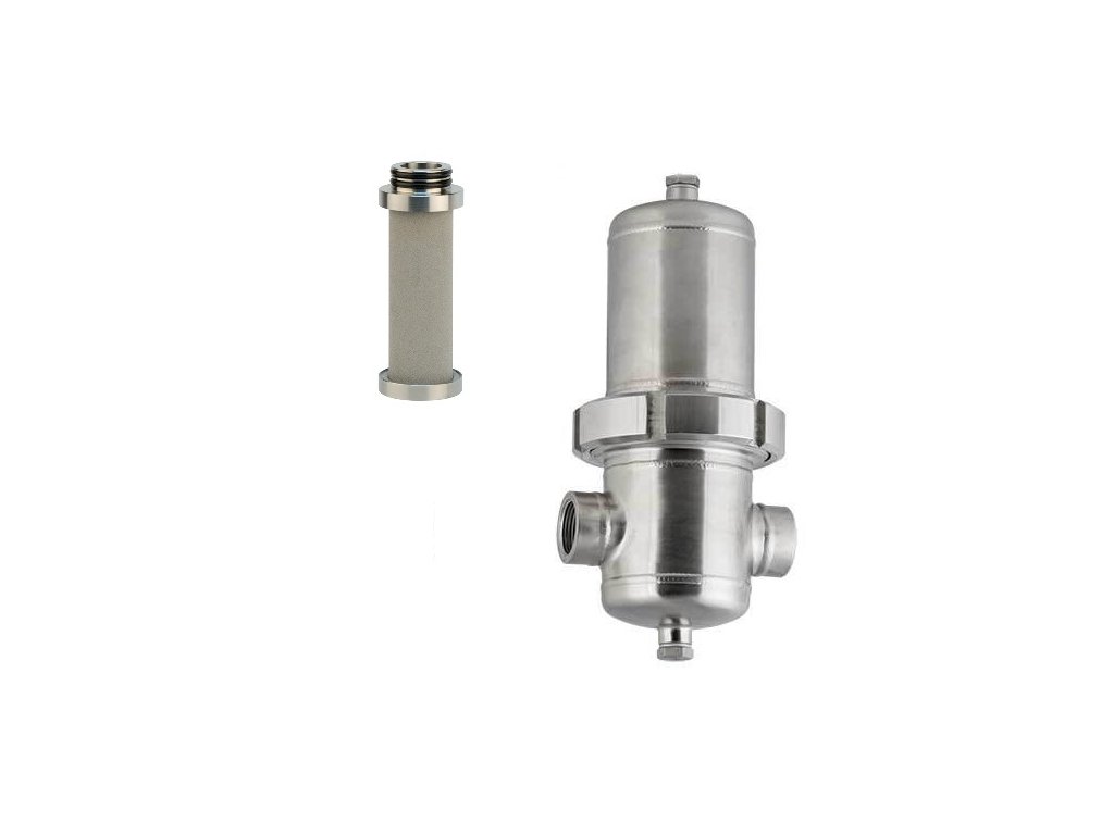 Nerezový prachový filtr IHP1R s přípojným závitem G1/4" určený k efektivnímu odstranění prachových nečistot, oleje, vody a dalších příměsí ze stlačeného vzduchu do 1 um....