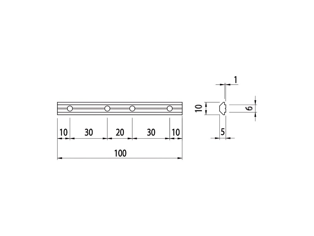 Spojka do drážky s délkou 100 mm pro přímé spojení profilů série BH 20-6.