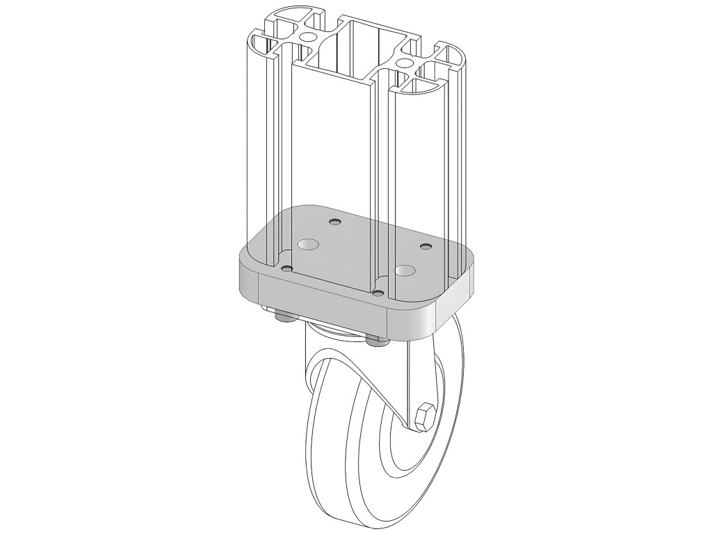 Příruba určená pro montáž koleček s přírubou 60x60 na kulaté profily AC 45-8 s řezem 45x90.