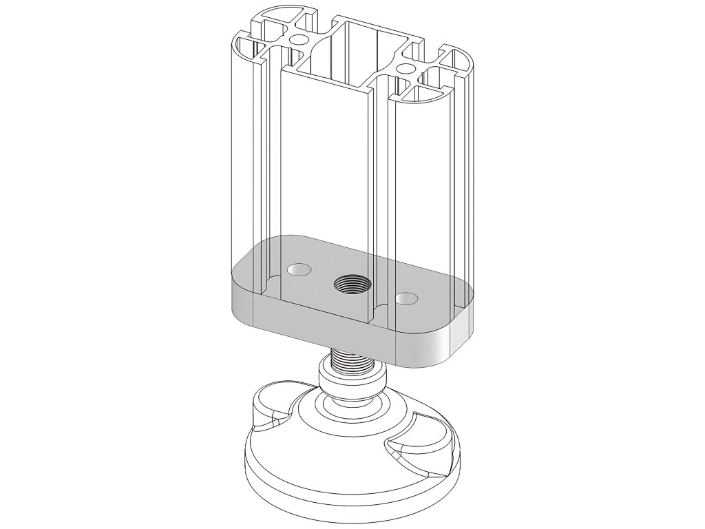 Příruba určená pro montáž podstavců se závitem M16 na kulaté profily AC 45-8 s řezem 45x90.