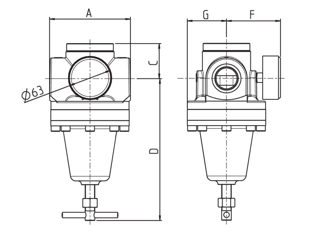 - vybavené manometrem pro výstupní tlak o průměru 63 mm, možnost montáže v jakémkoliv směru