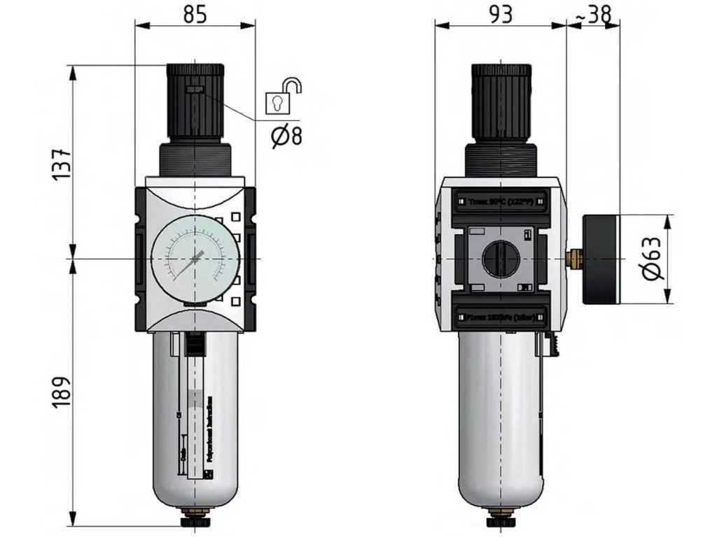 Regulátor tlaku stlačeného vzduchu FUTURA včetně filtrace - FR34-1F