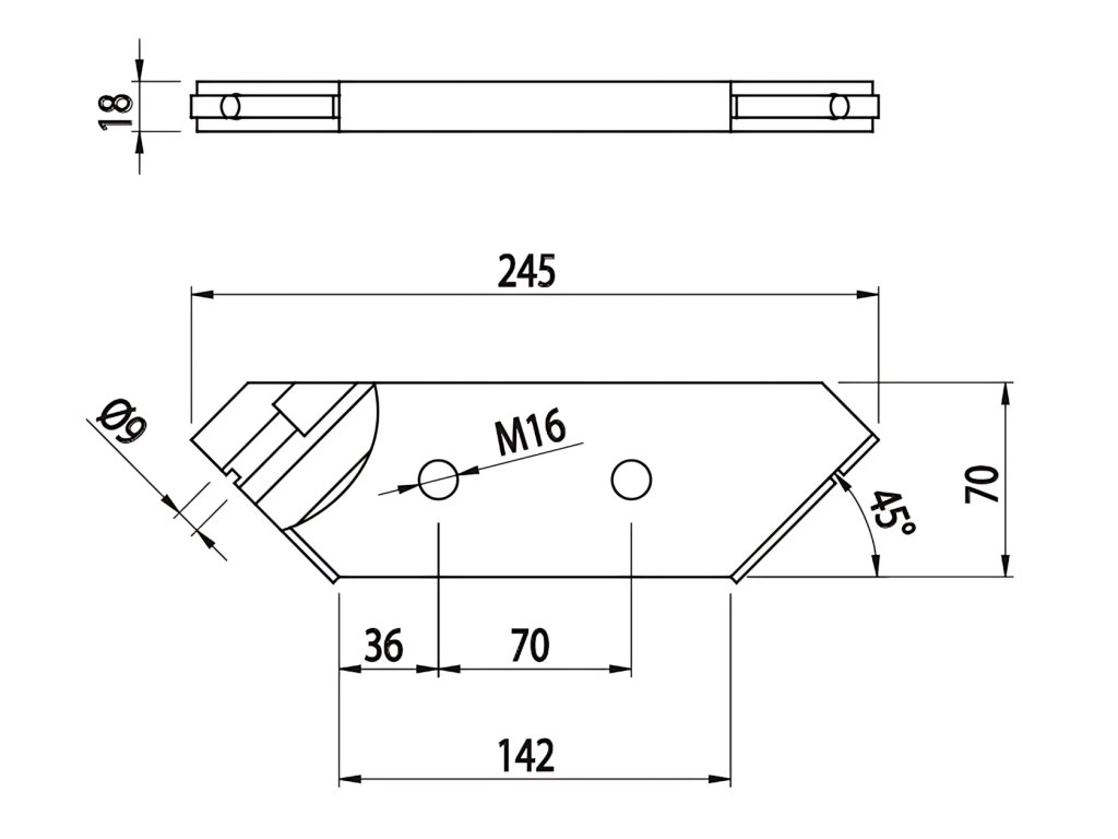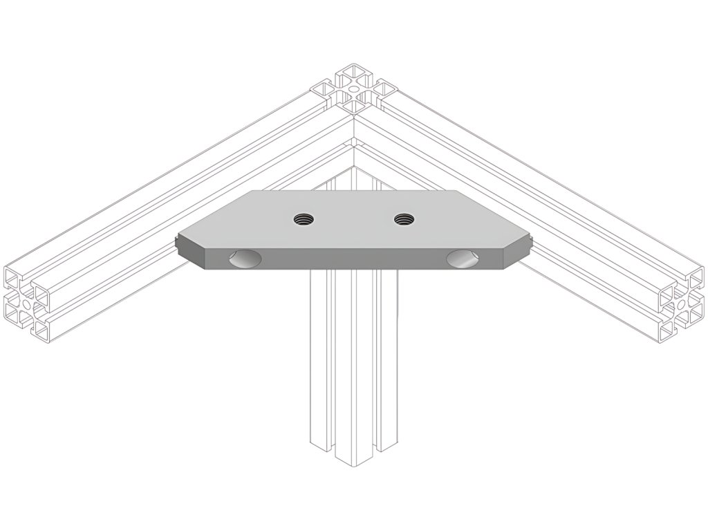 Příčka pro montáž do rohového spoje pomocí šroubů M8x40 a pro připevnění podstavců se závity M16.