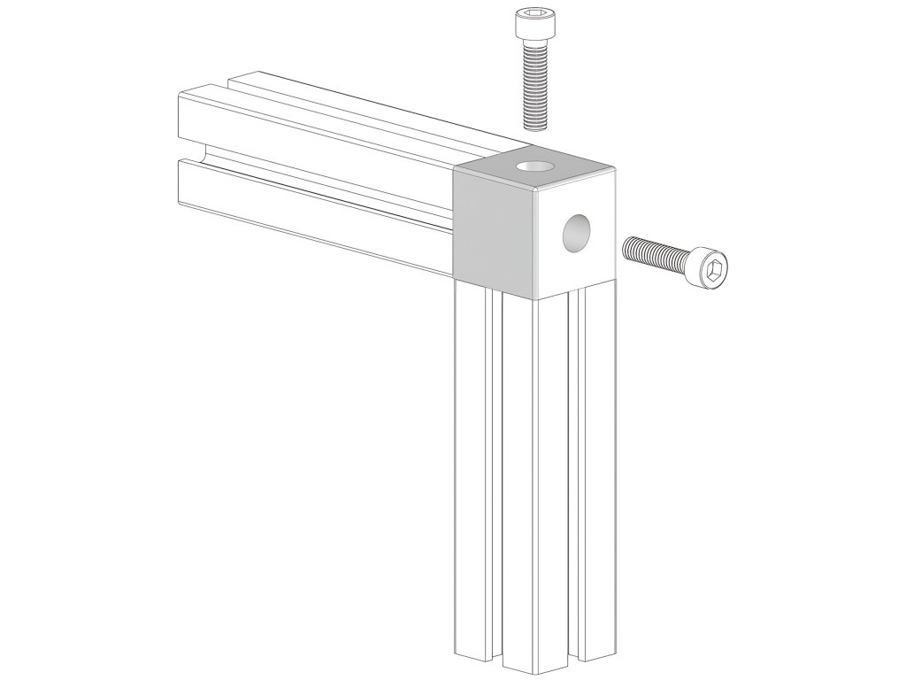 Rohová spojka pro spojení 2 profilů série AC 30-6 s řezem 30x30 pod úhlem 90°.