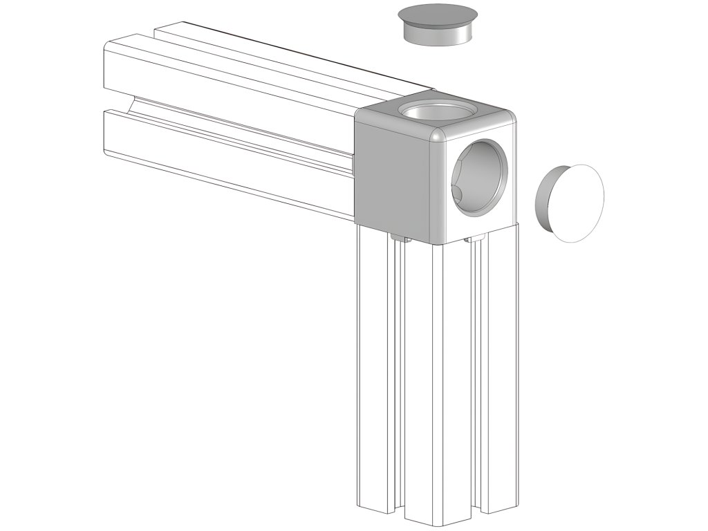 Rohová spojka pro spojení 2 profilů série AC 40-8 s řezem 40x40 pod úhlem 90°.