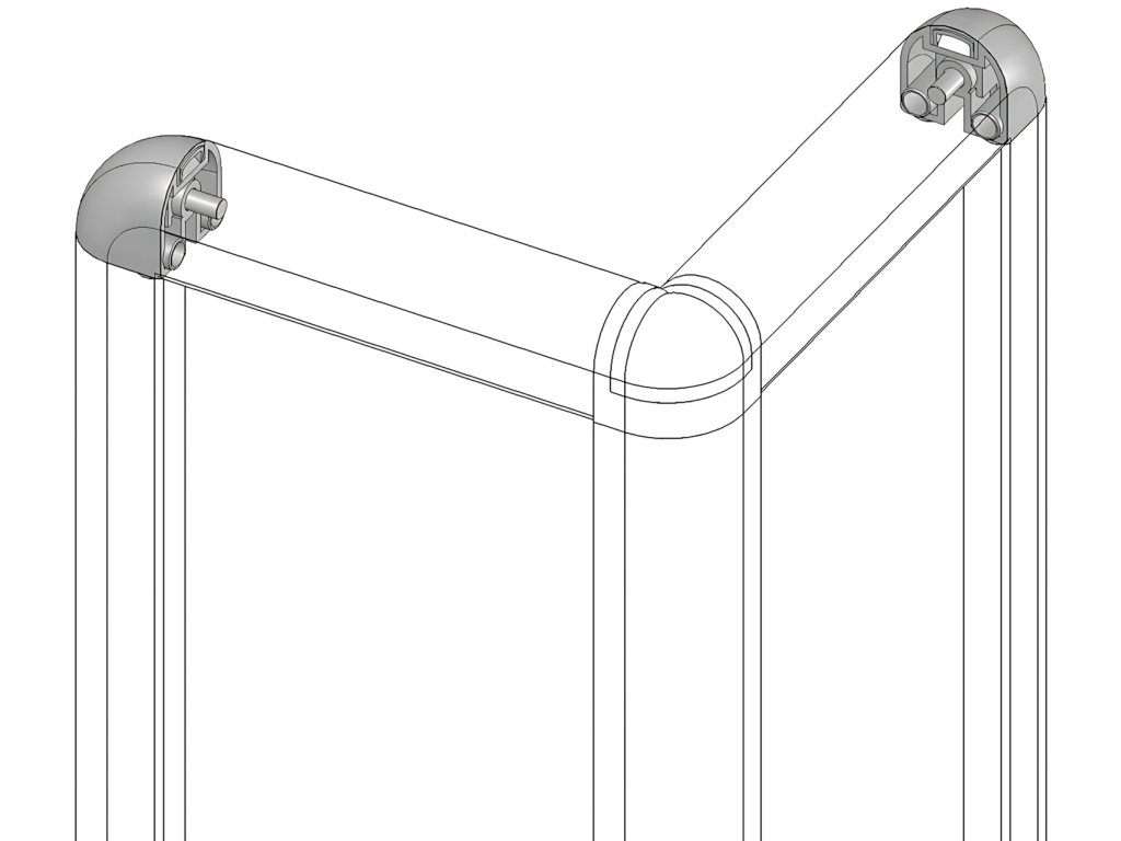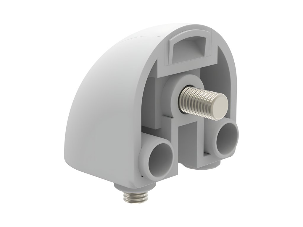 Rohová spojka pro spojení 2 kulatých profilů 084.101.037 ze série AC 45-8 pod úhlem 90°.