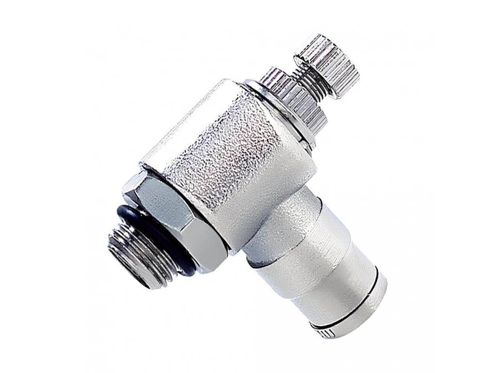 Úhlový škrtící ventil na odfuku 8 - G1/4 - kovové nástrčné provedení