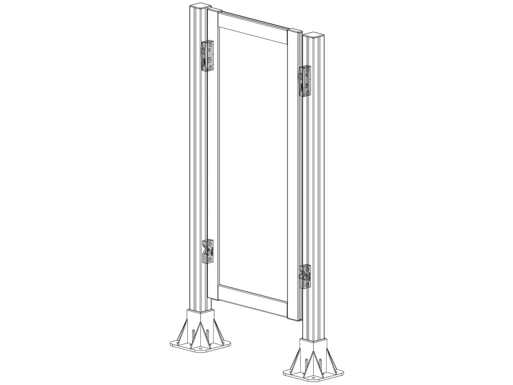 Sada dílů pro rychlou a bezpečnou fixaci panelů pro oplocení vyrobené z profilů s drážkami sérií AC 40-8 a AC 45-8.