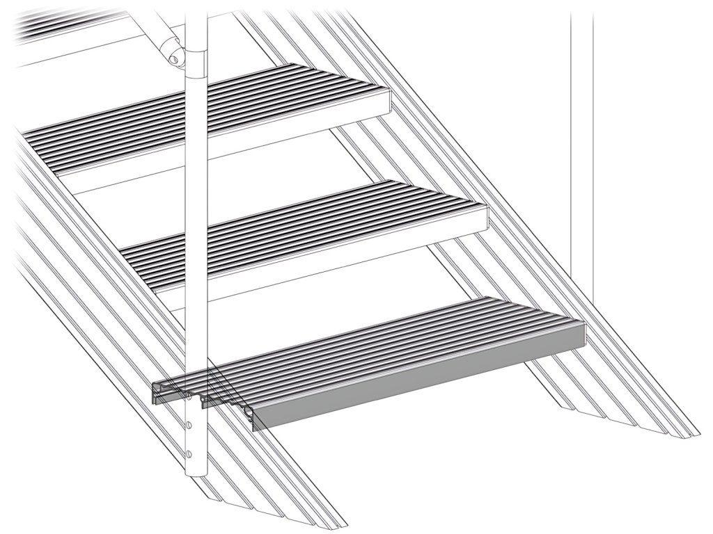 Profil z hliníkové slitiny určený pro vytváření schodů s hloubkou 260 mm.