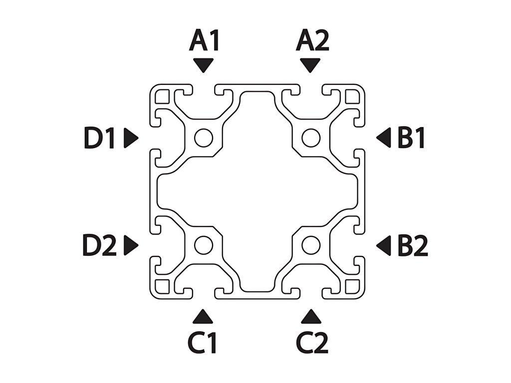 Univerzálne možnosti pripojenia vďaka 8 drážkam na všetkých stranách profilu.