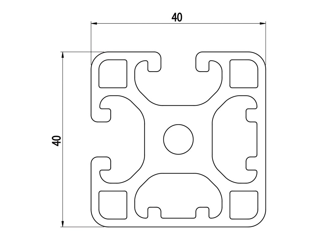Hliníkový profil IM 40-8, 40x40, s 2 susediacimi drážkami, ľahký