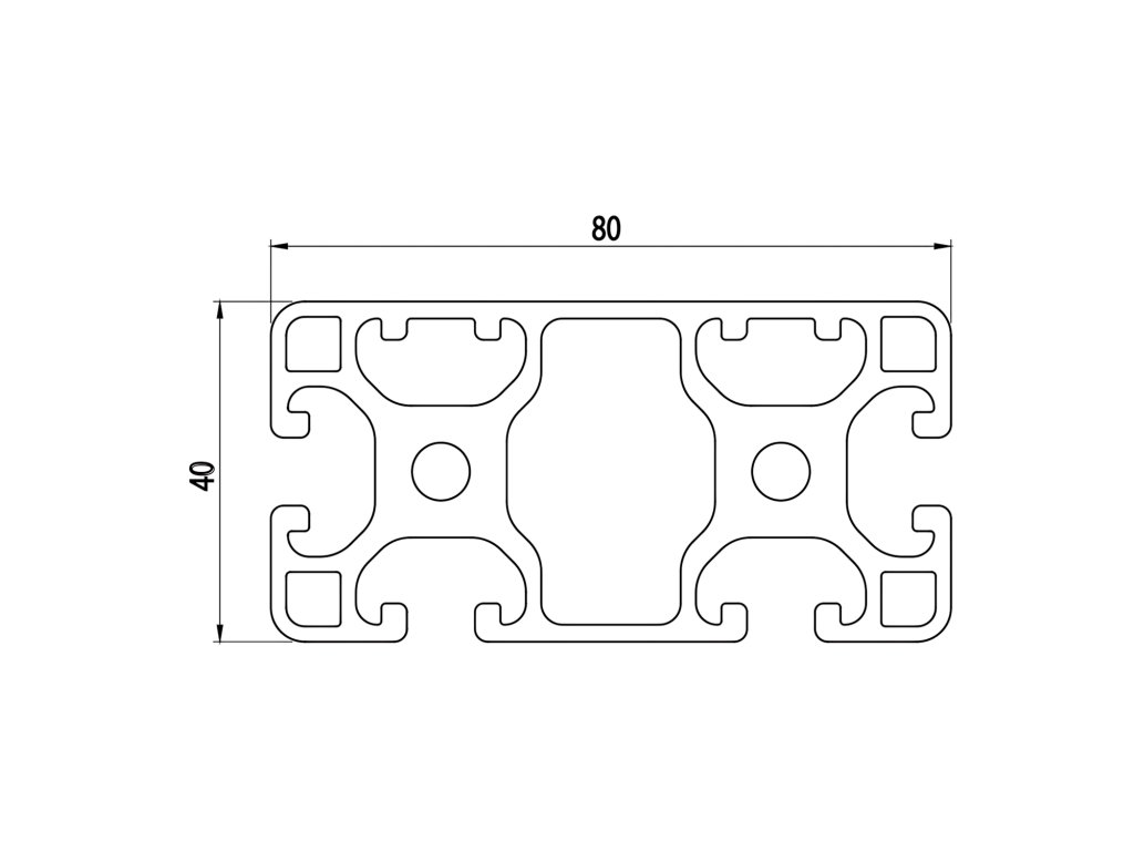 Hliníkový profil IM 40-8, 40x80, so 4 drážkami, ľahký