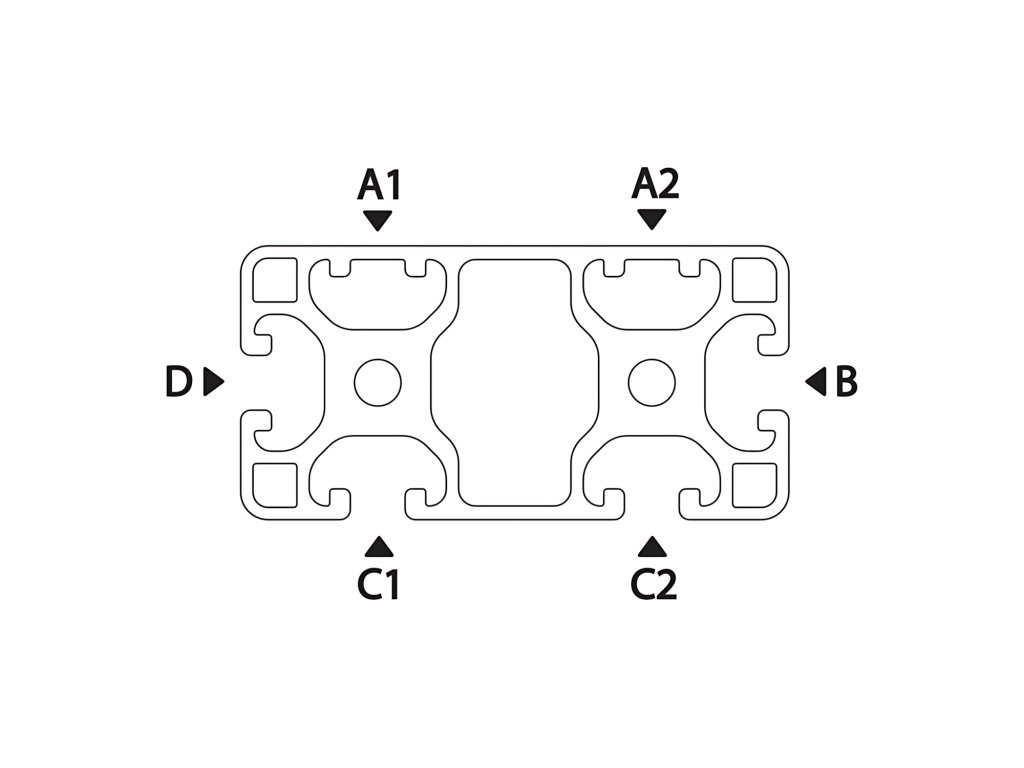 Hliníkový profil s obdĺžnikovým rezom určený na vytváranie bežných štruktúr s vyšším zaťažením v smere dlhšej strany.