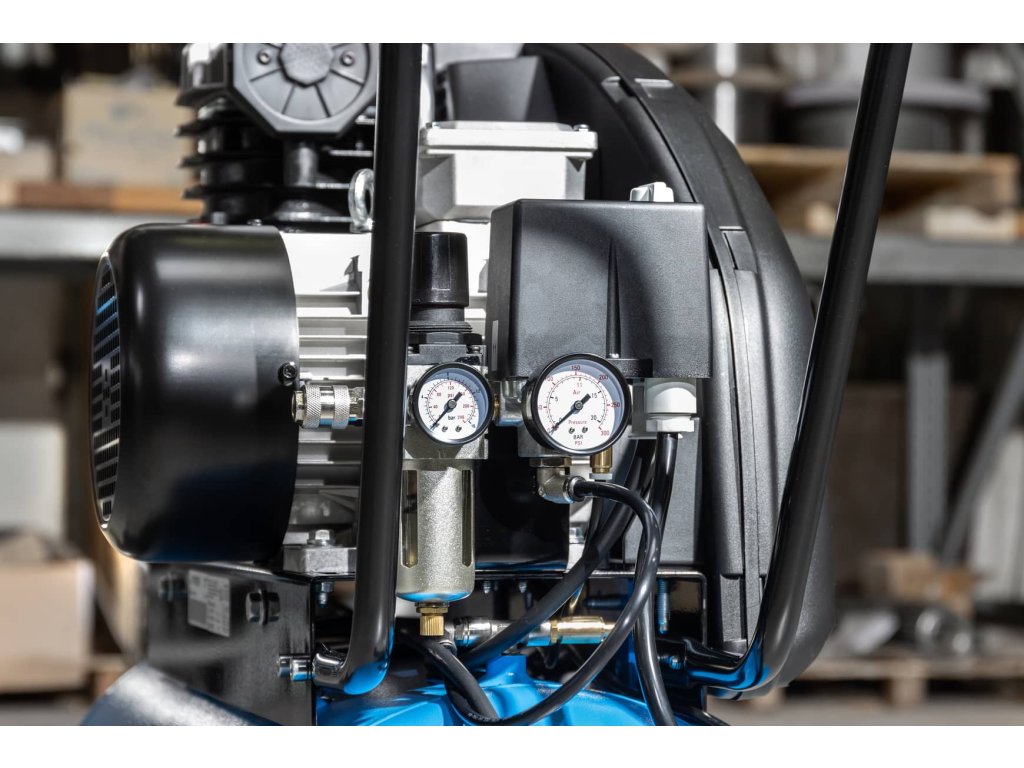 Dvojstupňový kompresor z rady Pro Line s rozšírenou výbavou v olejom mazanom prevedení určený pre mnoho profesionálnych aplikácií. Pripojenie elektromotora ku kompresorovej jednotke A49B prostredníctvom klinových remeňov so sacím výkonom 553 l/min a nasledujúcim štandardným vybavením: